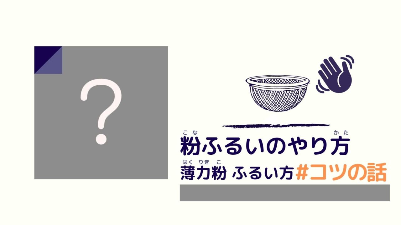 次は【粉ふるいのやり方、薄力粉ふるいかた】の流れを確認
